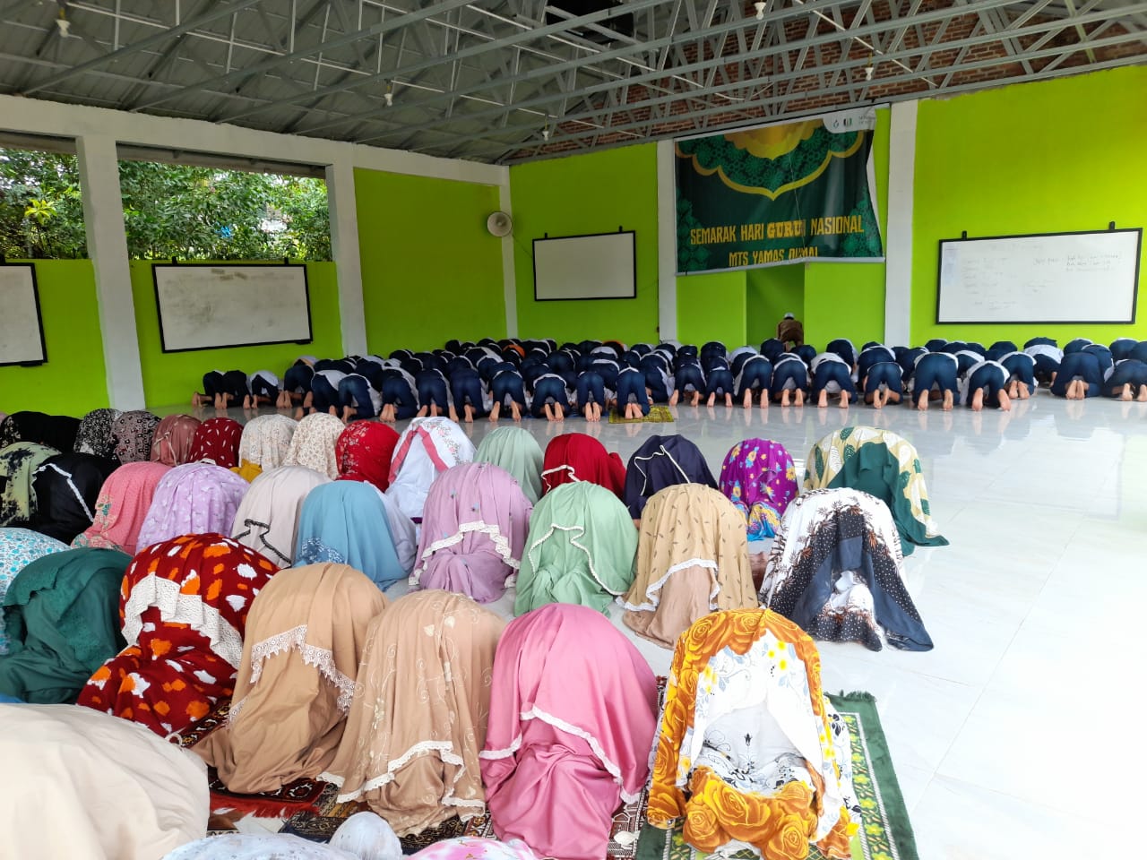 MTs kami melaksanakan upacara memperingati Hari Guru Nasional ke-80 Tahun 2025 pada hari Selasa, 25 November 2025, di halaman madrasah. Kegiatan ini diikuti oleh seluruh guru, tenaga kependidikan, serta peserta didik dari kelas VII hingga IX. Suasana upacara berlangsung khidmat dengan penampilan barisan siswa yang rapi dan penuh semangat. Upacara dipimpin oleh Kepala Madrasah yang menyampaikan amanat tentang pentingnya menghargai jasa guru dan meneladani dedikasi mereka dalam mendidik generasi bangsa.
